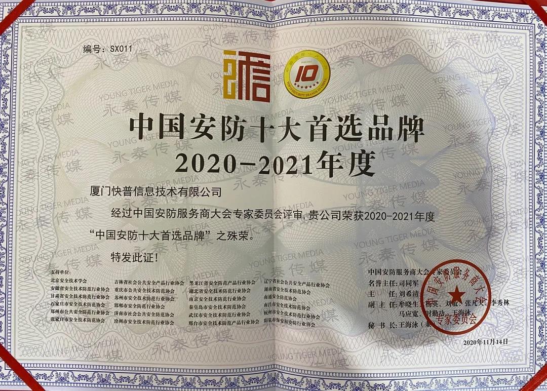 此次峰會,快普以先進(jìn)的產(chǎn)品理念和優(yōu)秀的市場服務(wù)獲得業(yè)界的一致好評,并榮獲“中國安防十大品牌”,感恩安防行業(yè)客戶的支持,快普將堅定使命,持續(xù)為新基建企業(yè)提供強(qiáng)有力的信息化管理支持。
