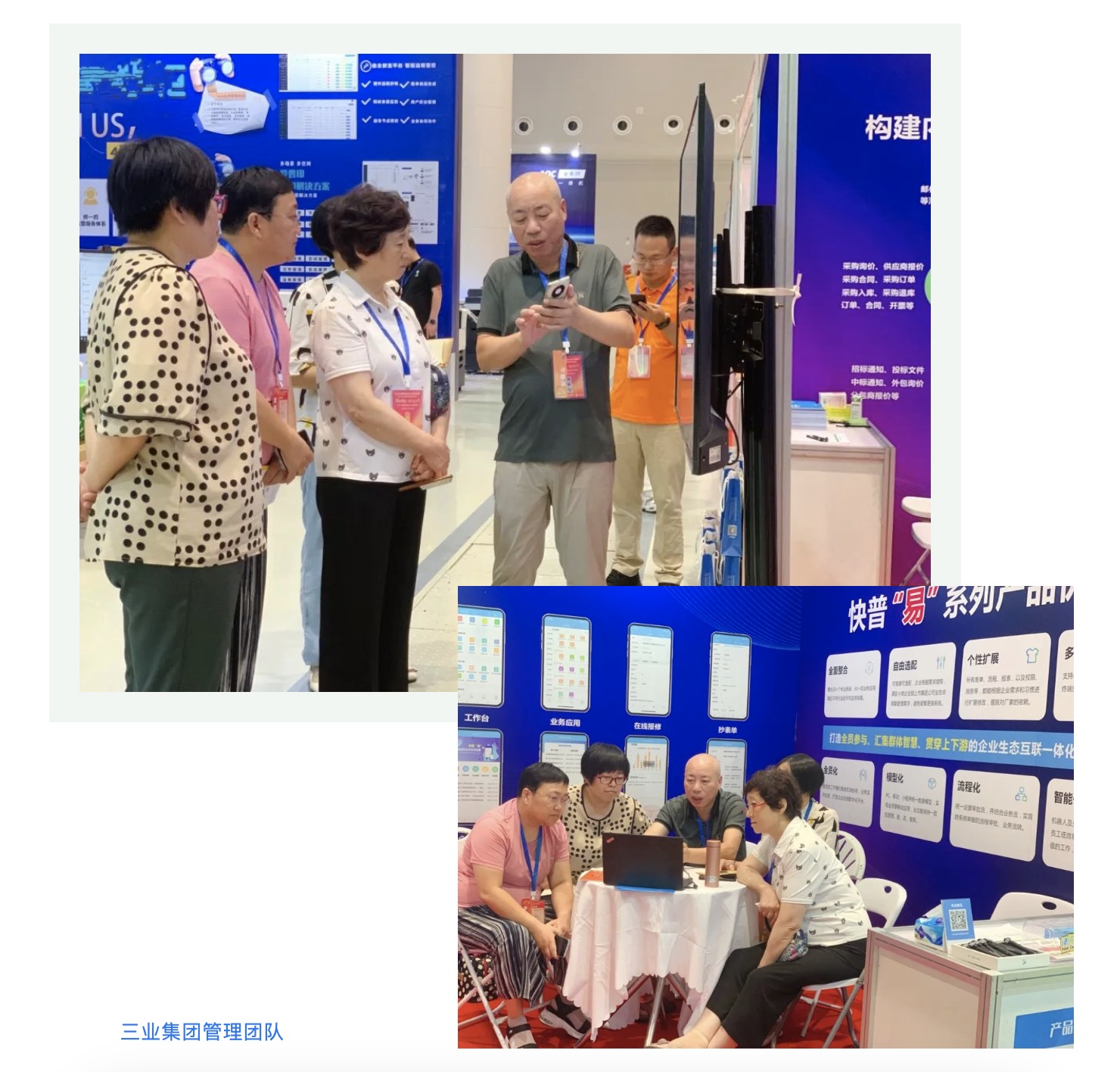 快普十幾年老用戶——山東三業(yè)集團楊總帶領(lǐng)管理團隊千里迢迢來現(xiàn)場參觀交流??炱湛偨?jīng)理溫欽平親自接待介紹,三業(yè)對快普“易”系列給與高度的認可,并確立了集團公司全部升級換代的合作意向。楊總還表示愿意向山東的行業(yè)客戶推薦快普,共同幫助更多的企業(yè)進步、受益。
