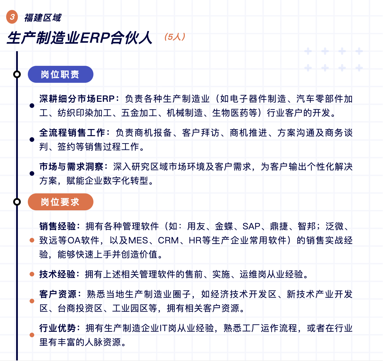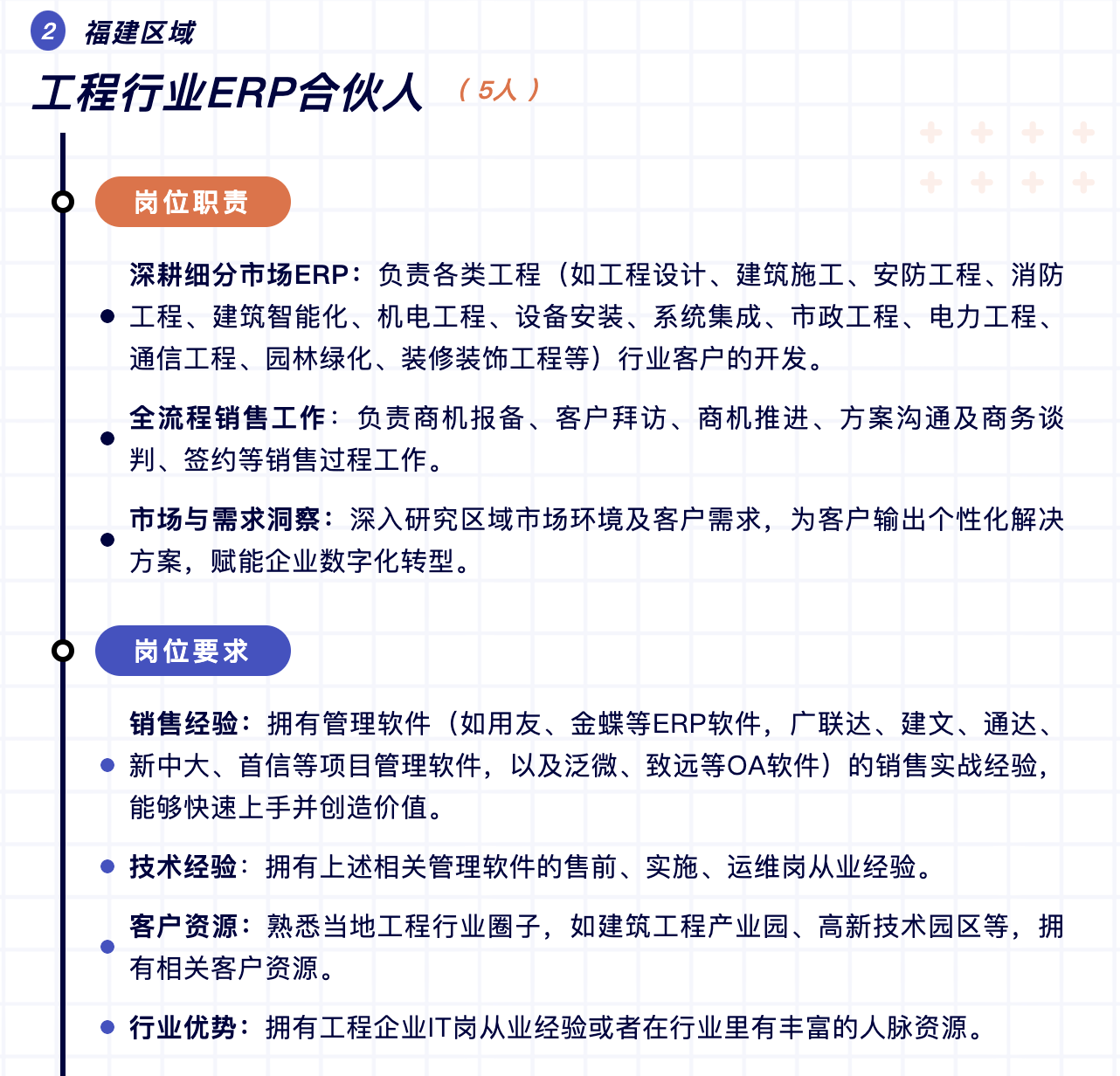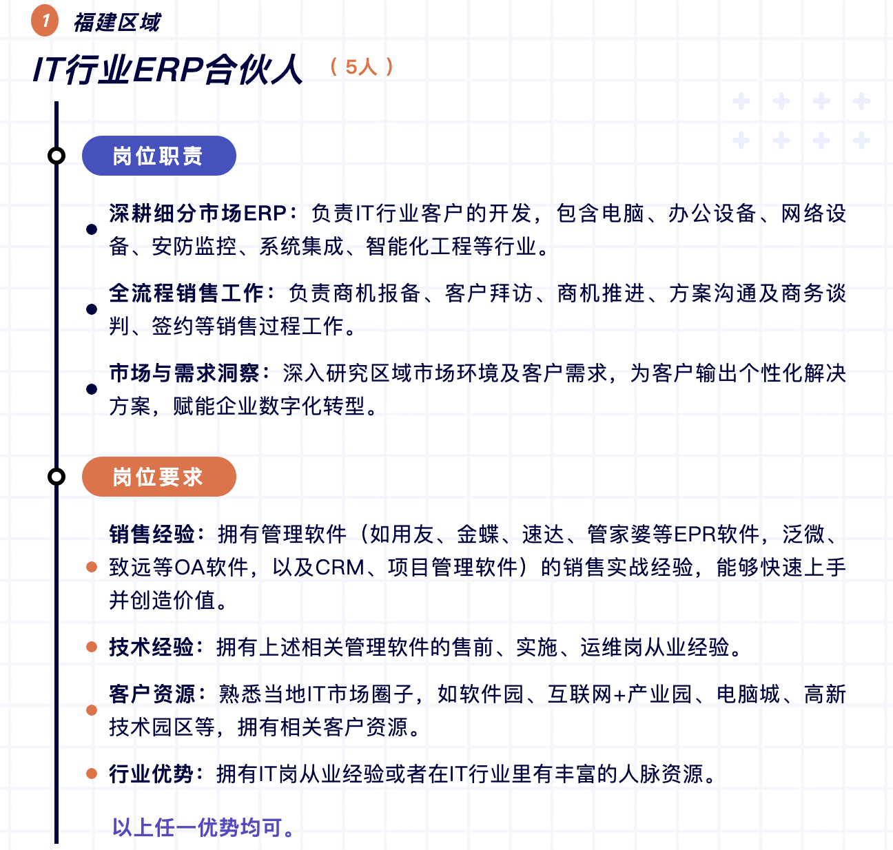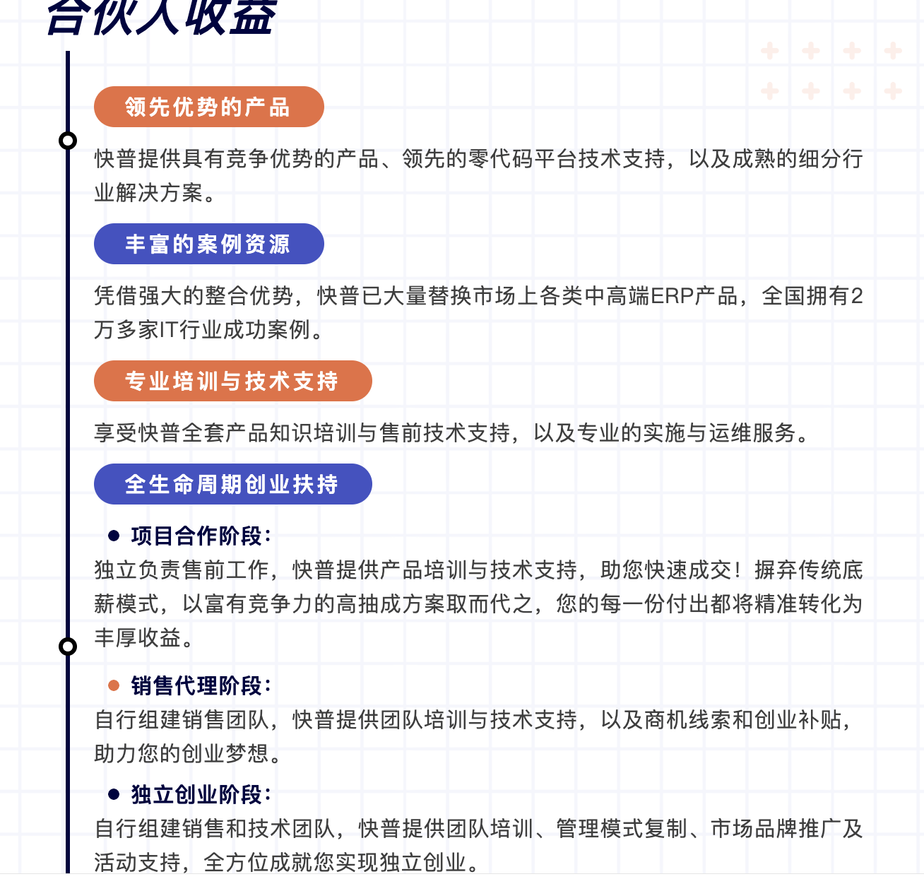 當(dāng)前數(shù)字化轉(zhuǎn)型市場(chǎng)巨大,為進(jìn)一步推動(dòng)中小企業(yè)數(shù)字化轉(zhuǎn)型,現(xiàn)將福建區(qū)域作為2025年首批試點(diǎn)城市,面向福州、廈門、泉州、漳州、龍巖、三明、南平、寧德等地招募城市合伙人。作為快普全國(guó)第一批試點(diǎn)城市合伙人,將享受到最優(yōu)厚的政策扶持與廣闊的發(fā)展舞臺(tái)。